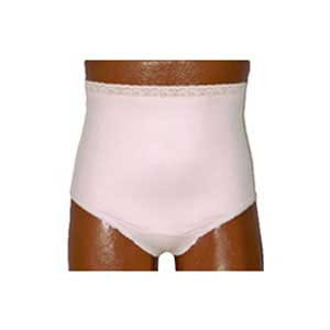 OPTIONS Ladies' Basic with built-in barrier/support, soft pink, right-side stoma, Small 4-5, hips 33" - 37". Everyday Basic Brief with light control for smoothing pouch and abdomen. Perfect for daywear or sleepwear. 80% Nylon/20% Lycra. Ostomy Barrier/Support 100% Cotton-absorbs/wicks moisture away from skin.